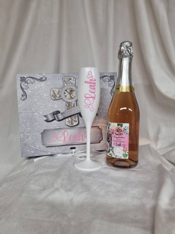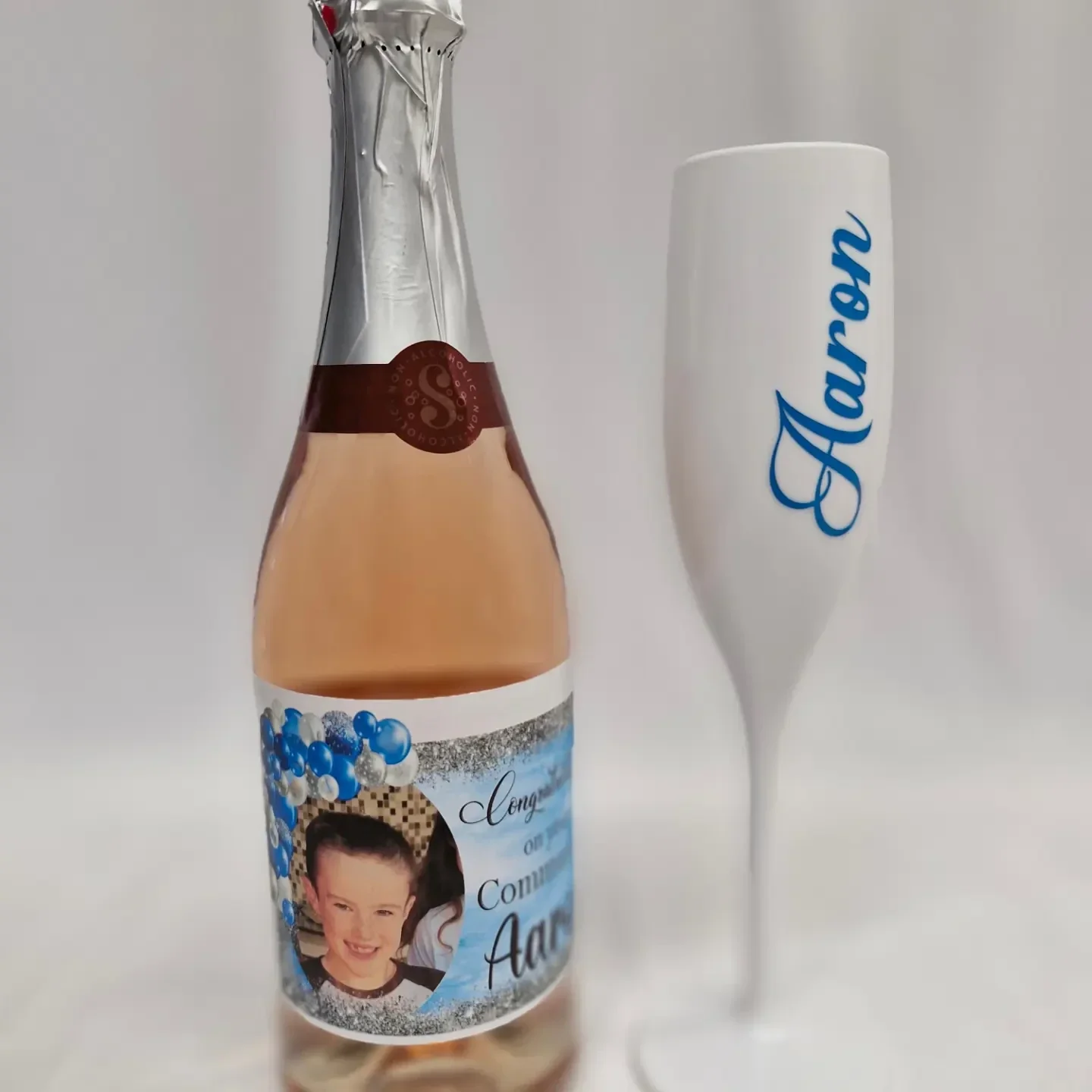 Glass available in white plastic champagne or a clear mini wine glass 🍷